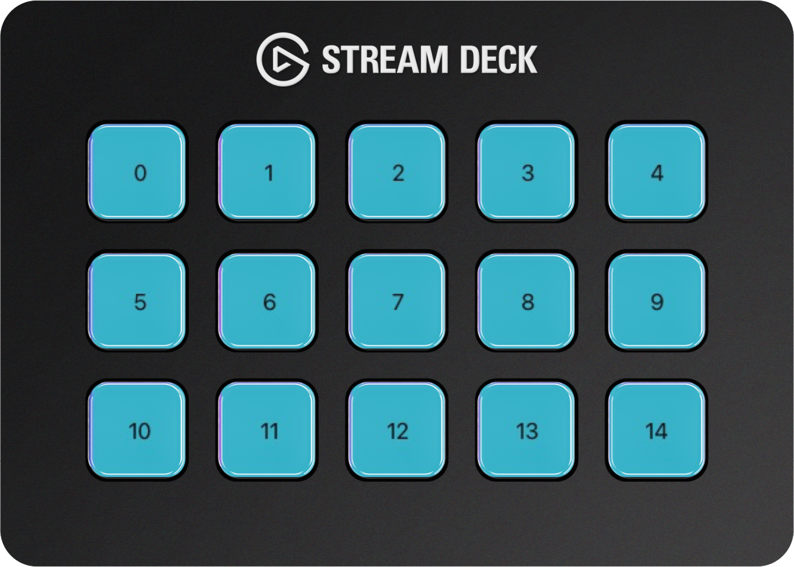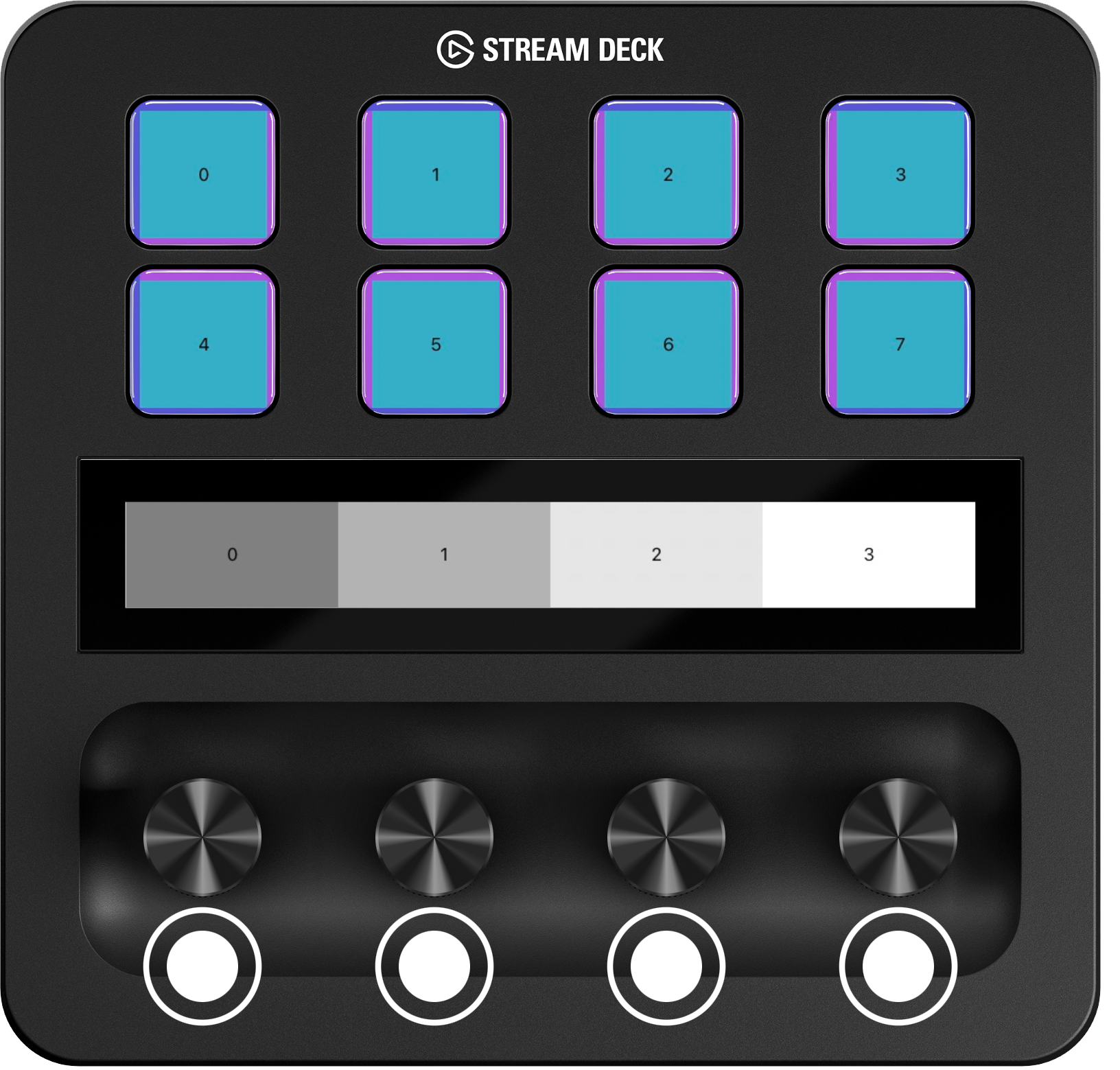 | Mini | ![]() Note: On the Stream Deck Mini device, you can not set a complete screen image. However, the purple background on the key area would be visible if the keys had transparent areas. | ![]() |